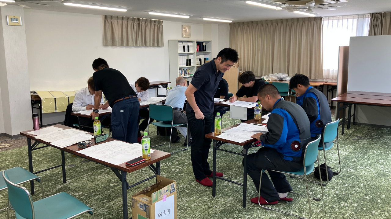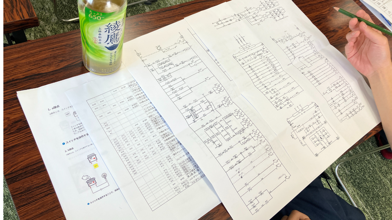 研修ではまず、座学を通じて業界の基礎知識や、電気・機械の構造、電気図面の読み方といった技術の基本をしっかり学びます。